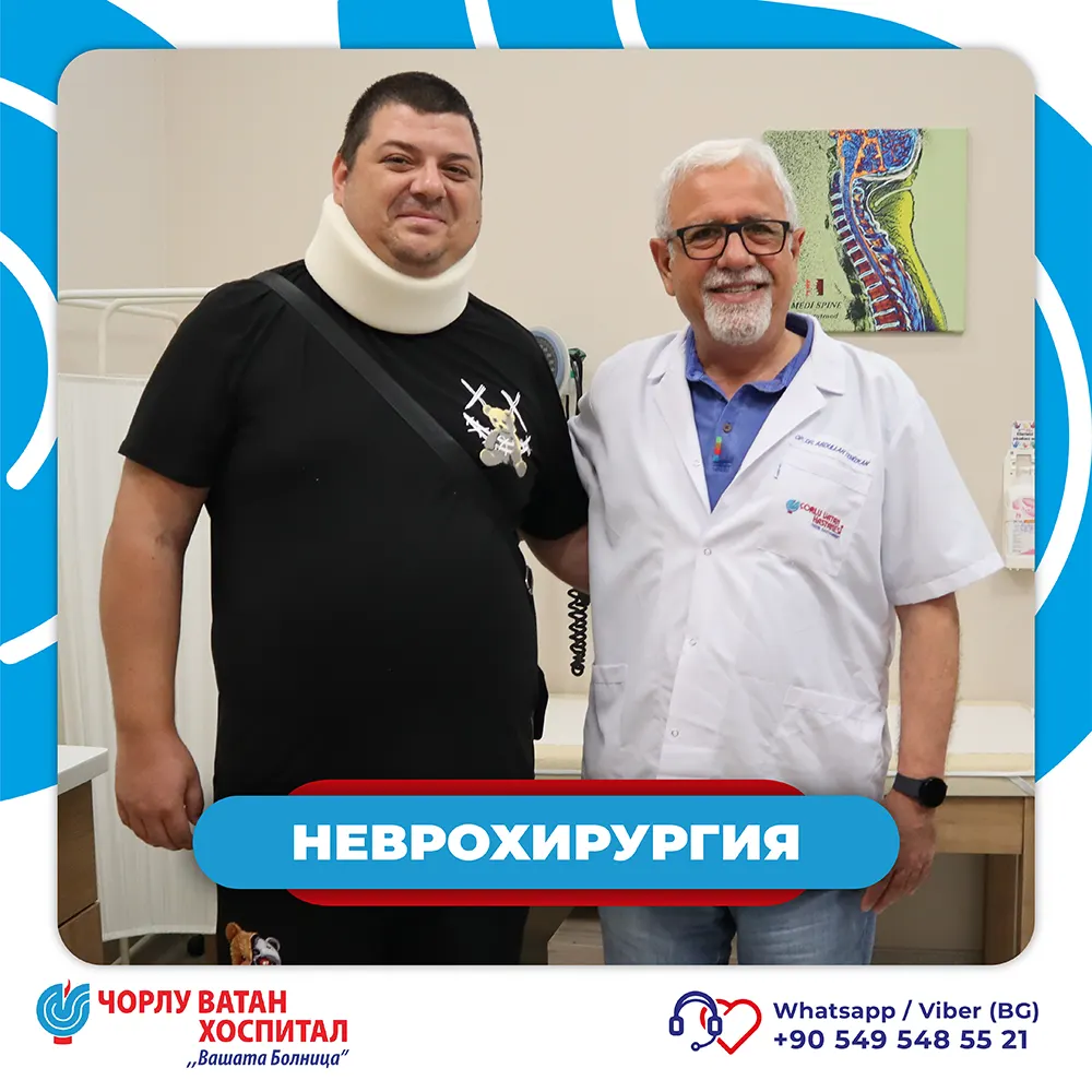 33-годишният г-н Кристиан Тонев се обърна към частна болница „Чорлу Ватан“ търсейки облекчение за наличните силни болки в областта на шията и лявата ръка. След като тези болки започват значително да нарушат ежедневието и цялостното му благосъстояние, с цел да намери решение на проблема, той се свърза с отдел международни пациенти на частна болница „Чорлу Ватан“ . Случаят на г-н Тонев бе поет от страна на д-р Абдуллах ТЕМИЗКАН – специалист по Неврохирургия.