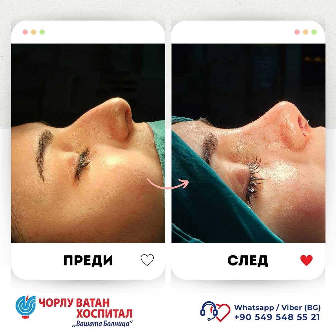 Частна Болница “Чорлу Ватан” разполага с център по Ринопластика, където предлагаме услуги, както за пациентите ни от страната така и за нашите пациенти от чужбина. По време на посещението си в болницата ни нашите чуждестранни пациенти ще бъдат придружени от наши колеги, които говорят родния им език, и чрез тях ще се осъществява връзката между пациентите и специалистите ни. По този начин пациентите ни няма да имат затруднения като езикова бариера.